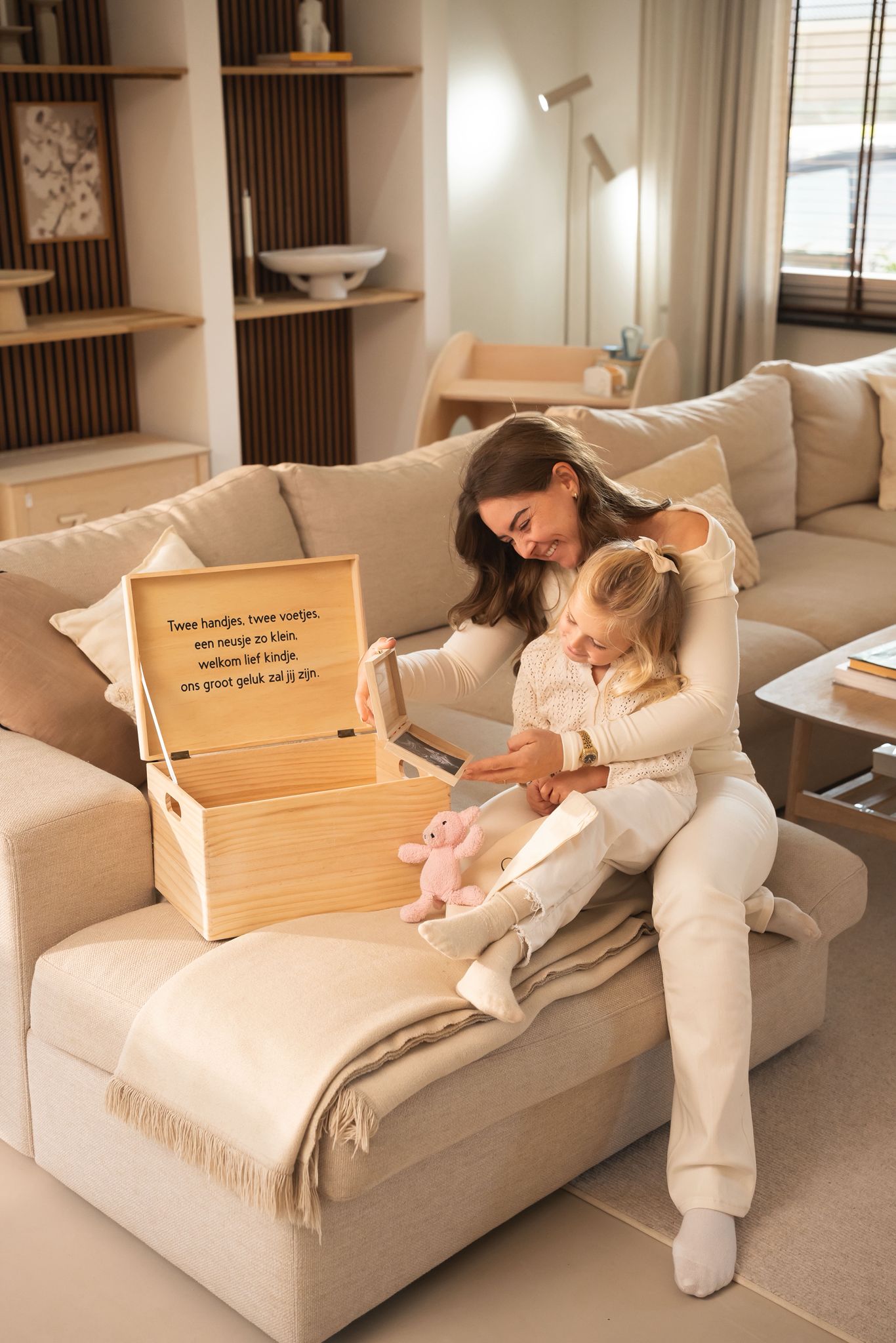 Bewaar alle kostbare herinneringen van jouw kleintje in deze prachtige houten memorybox met complete bewaarset . Deze unieke set is speciaal samengesteld om alle bijzondere momenten van de eerste levensjaren veilig en mooi op te bergen.
